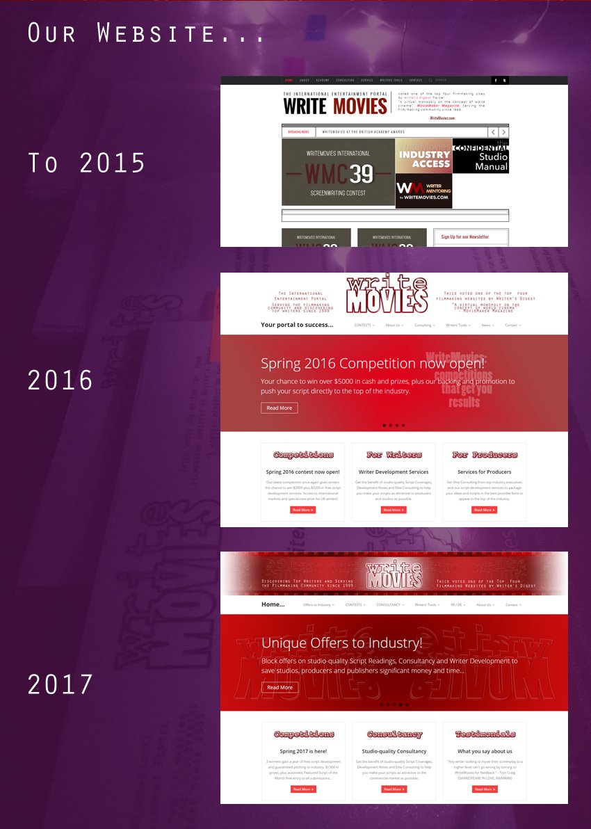 Take a look at how we’ve transformed the website and logo from what it was in 2015 and check out how much our activity has grown on Facebook, Twitter and other online platforms. Not forgetting, of course, all the latest stats and news on our winners, including an update from former winner MAGNETIC by Carolyn Kras who has attached a director and producers to her script!